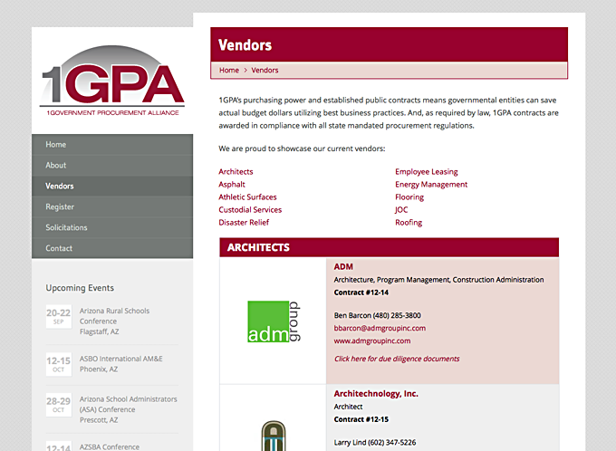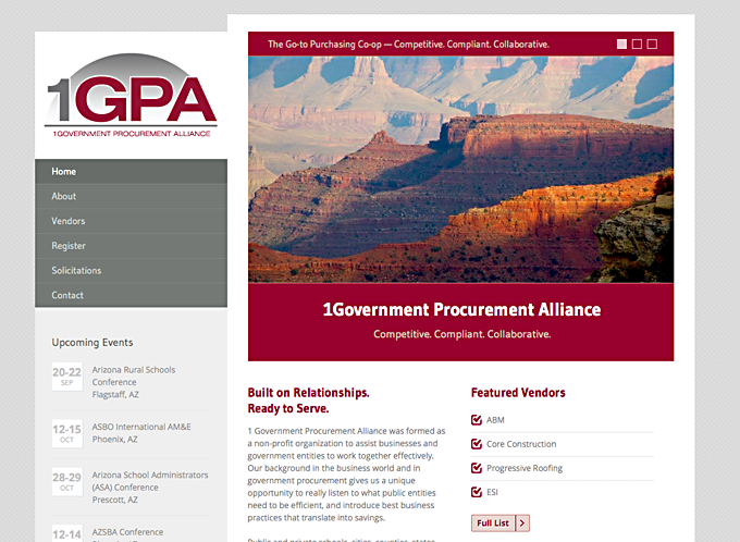 1GPA, a start up business based in Arizona, hired Mattas Media to create a professional website to present their business to various state agencies and potential vendors. The site required immediate functionality to have an online presence, yet not all of the pertinent data was ready for launch. Working closing with the staff at 1GPA, Mattas Media provided an interim solution and has worked to provide a seamless integration of 1GPA's offerings as they become available.