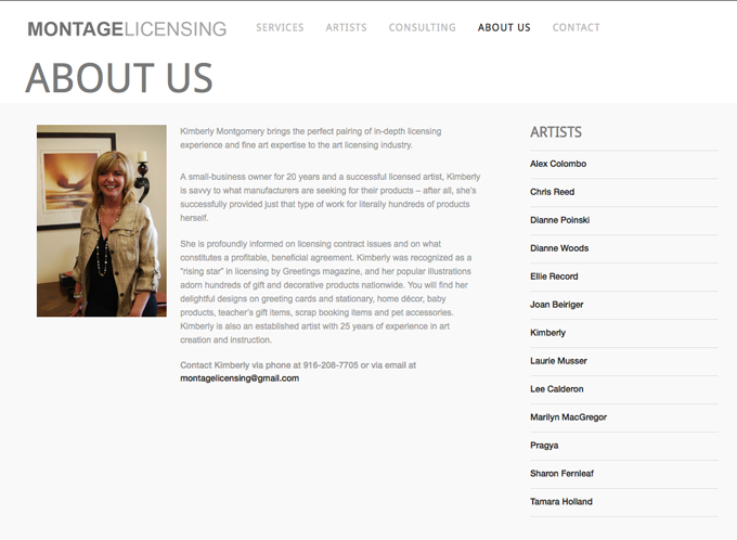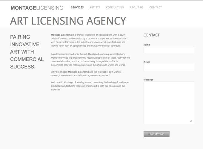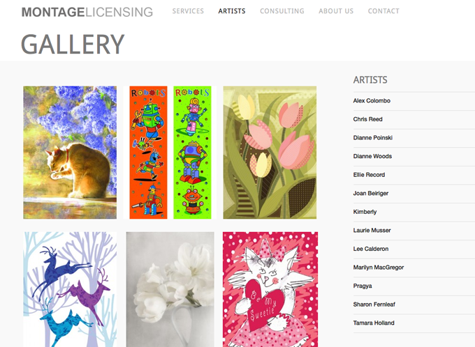 Montage Licensing, an art licensing agency, contacted Mattas Media to create their online portfolio of their current artist offerings. After selecting a design, Mattas Media worked with the client and their artists to collect the information needed for the website.